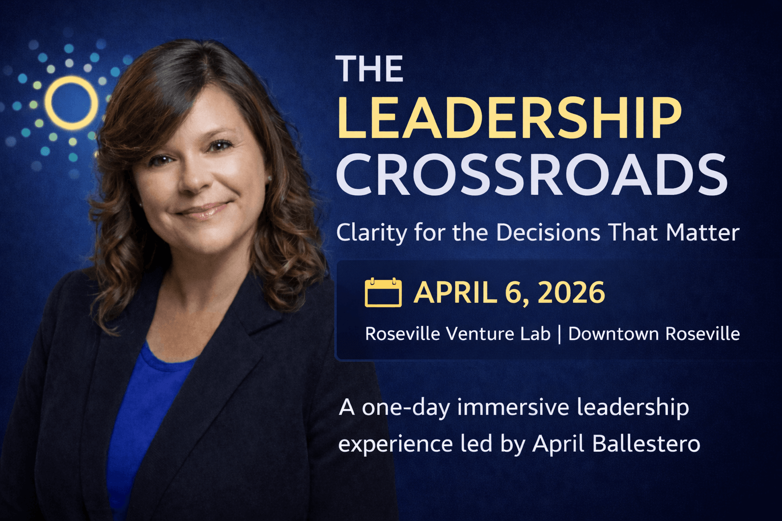 The Leadership Crossroads is a one-day immersive leadership experience led by April Ballestero, rooted in the work she’s been doing through One Light Ahead for nearly 20 years.